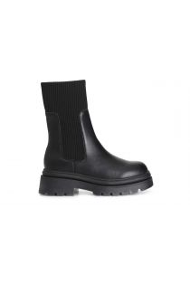 Botín de mujer de piel y pala efecto calcetín en tejido elástico para facilitar su calce. tacón de 55 mm de altura. la plantilla es de piel.