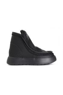 Botín de mujer con suela elevada. parte superior de piel y forro de pelo sintético.
