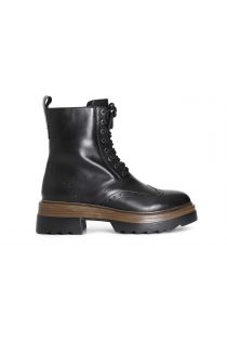 Botín de mujer de piel con cordones y perforaciones inglesas. la plantilla es de piel. suela tipo tanque de 40 mm de altura y plataforma de 30 mm.