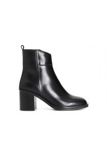 Botín de mujer de piel redondeada. cremallera en el interior del zapato. la plantilla es de piel. tacón grueso de 75 mm de altura.