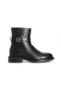 Botín de mujer de piel con tira y hebilla. el tacón tiene 30 mm de altura.