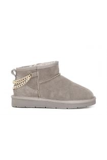 Botines bajos de piel de ante con cadenas de adorno e interior de piel sintética