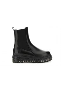 Botines de piel sintética con elásticos laterales, plantilla de piel y plataforma de 3,5 cm con tachuelas. Un look atrevido y cómodo para cualquier ocasión.