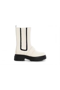 Botines de piel bicolor con banda elástica lateral y logotipo CN estampado en caliente. Suela dentada