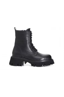 Botines con cordones de piel con multicremallera de metal y logotipo en relieve en el lateral. Suela dentada superligera