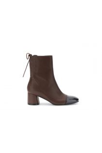 Botines efecto piel con puntera de charol y cierre de cordones. Tacón cuadrado de 6 cm. Diseño de alta costura y detalles atrevidos para un estilo urbano chic que no pasará desapercibido.