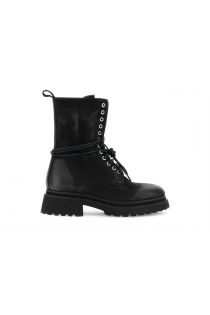 Botines con cordones para mujer en piel nobuk negra con un look atrevido. Plantilla de piel y tacón de 5,5 cm para mayor comodidad y estilo. Perfectos para un invierno audaz.
