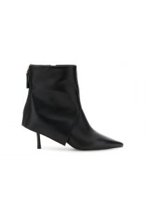Envolviendo el tobillo con un pliegue sensual, estos botines de cuero con puños esculpen la silueta con un tacón fino de 7,5 cm y una forma delgada con un encanto magnético.