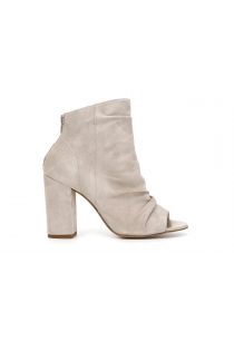 Botines de punta abierta de ante. Tacón forrado de piel.