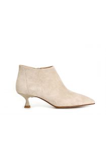 Botines cónicos de piel de ante con cremallera lateral interna para facilitar su colocación. tacón de carrete de 45 mm de altura. calzado de moda para el día a día que satisface las exigencias de un estilo de vida dinámico.
