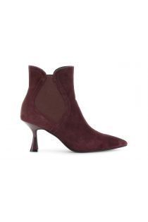 Botines de ante con elásticos asimétricos, plantilla de cuero y tacón de 7,5 cm. Elegantes y cómodos, perfectos para looks femeninos y a la moda.