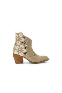 botines de ante perforado con flores beige