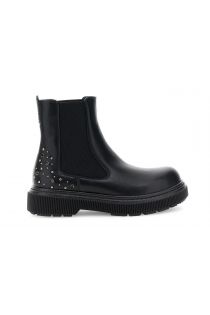Botines de piel sintética para mujer con elásticos laterales y tachuelas cromadas en el tacón. Forro de tela y suela de 4 cm. Perfectos para un look urbano y chic.