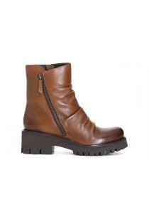 Botines de piel arrugada con cremallera oblicua. Tacón grueso de goma y suela tipo tanque