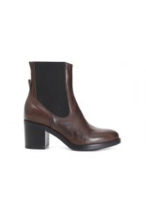 botines de piel con banda elástica y tacón medio