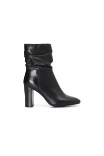 Botines de piel con caña arrugada y tacón alto y grueso.