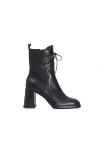 Botines de piel con cordones por delante, forma cuadrada, tacón medio alto
