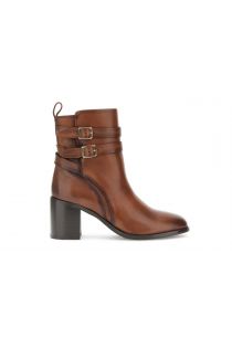 Botines de piel con doble hebilla lateral y cremallera interior. Plantilla de piel y tacón de 7,3 cm que le confieren una elegancia atrevida y contemporánea.