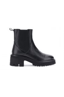 Botines de piel elástica para mujer con suela dentada, tacón de 5,5 cm y plataforma de 2,5 cm. Diseño atrevido y cómodo con plantilla de piel. Perfectos para looks urbanos y contemporáneos.