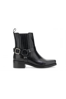 Botines de piel con espuelas laterales y elásticos. Plantilla de piel para mayor comodidad. Tacón de 4,5 cm. Estilo y detalles atrevidos.