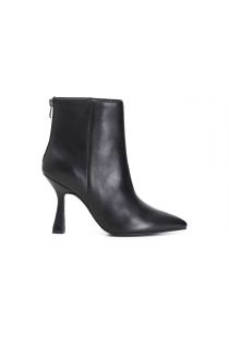 Botines de piel de tacón alto asimétrico y punta afilada. Sexis y sofisticados, para enriquecer estilos atrevidos.