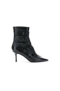 Botines de piel efecto naplak con fruncido y cremallera trasera. Punta puntiaguda y tacón de aguja de 7,5 cm. Forro de piel para una comodidad excepcional.