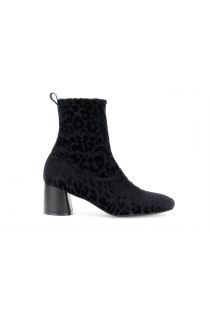 Botines de tejido elástico flocado con estampado de lunares tono sobre tono. Su tacón grueso de 6 cm y su cómodo ajuste añaden un toque atrevido y moderno a cualquier look.