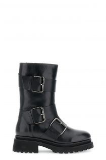 Botines negros de piel con hebillas decorativas maxi. Diseño atrevido y contemporáneo, plantilla de piel y tacón de 5,5 cm. Perfectos para looks urbanos y atrevidos.