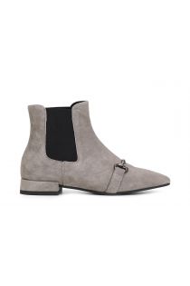 Botines en piel de ante con forma puntiaguda con elásticos y horsebit de adorno.