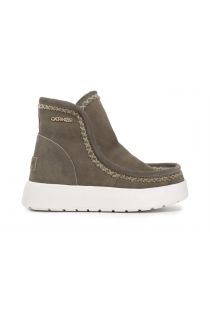 Botines en piel de ante con forro de pelo sintético. Logotipo metálico y suela realzada. Pespuntes a la vista adornan el borde.