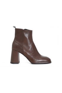 Botines en piel de ante con punta cuadrada y tacón en contraste. Cremallera interna.