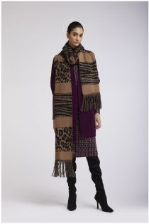 Bufanda con flecos confeccionada con hilo jacquard-de mezcla de lana. disponible en 3 variantes de color.