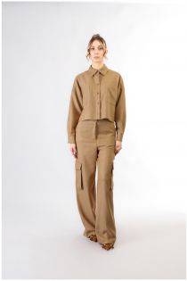 Camisa corta con bolsillos de parche en tejido grisalla. prenda de manga larga con forma de caja. imprescindible en el armario para llevar durante el día con un pantalón o unos vaqueros a juego.