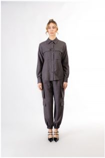 Camisa con bolsillos de parche y manga larga en tejido grisalla. imprescindible en el armario para llevar durante el día con un pantalón o unos vaqueros a juego.