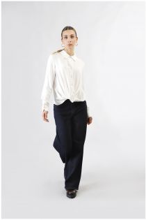 Camisa de manga larga confeccionada en georgette de viscosa. la cintura está realzada por un motivo con efecto anudado. para combinar con denim y llevar con un blazer para crear looks informales y más refinados.