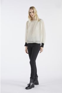 Camisa con parte delantera plisada confeccionada en un vivo tejido georgette con delicados toques de lúrex