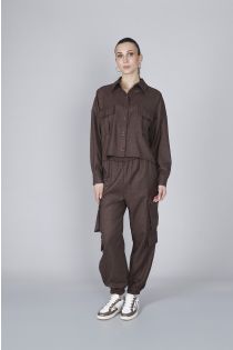 Camisa corta de corte cuadrado con bolsillos de parche y mangas largas, perfecta para un look casual contemporáneo. Corte holgado. La modelo mide 173 cm y lleva una talla S.