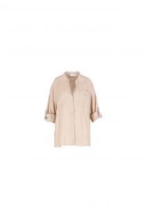 Camisa de lino versátil y práctica con bolsillos de parche aplicados