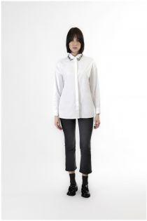 Camisa de manga larga con cuello bordado a mano con perlas bruñidas. el modelo está confeccionado en popelina de algodón y se caracteriza por su corte oversize con hombros caídos para un ajuste aún más cómodo. cierre con botones ocultos. para combinar con denim y llevar con un blazer para crear looks informales y más refinados.
