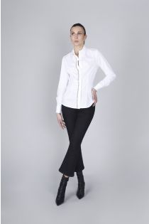 camisa de popelina con ribete de pedrería en la parte delantera. white