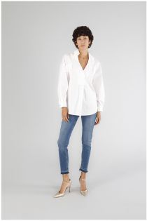 Camisa de manga larga en popelín elástico con ajuste cómodo y escote en "v". su línea suave transmite múltiples funciones y se adapta bien a diferentes ocasiones de uso.