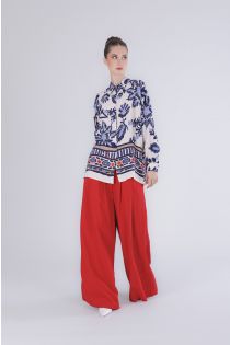 Camisa oversize de viscosa marroquí estampada con un corte fluido y contemporáneo. su diseño holgado realza la libertad de movimiento del tejido ofreciendo comodidad y elegancia para looks refinados de diario. la modelo mide 175 cm y lleva una talla s. corte: confort.