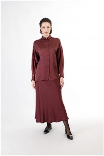 Camisa de manga larga en raso de viscosa pieza teñida en prenda. cierre con botones tono sobre tono. femenina y refinada esta camisa se caracteriza por su corte suave que acaricia la silueta. perfecto para completar looks elegantes combinados con prendas de colección.