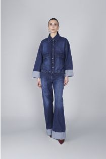 Camisa vaquera de corte cómodo con mangas largas y anchas y bajo vuelto. Bolsillos delanteros adornados con apliques de pedrería para un look informal, a la vez que alegre y original. La modelo mide 173 cm y lleva una talla S.