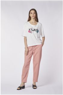 Camiseta amplia con abertura por detrás en punto de algodón con estampado y bordado floral