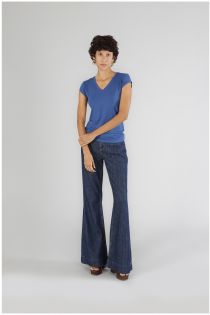 Camiseta fresca y ligera de punto de viscosa con escote en pico y manga japonesa