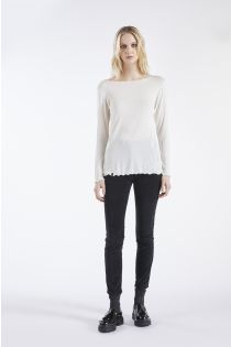 Camiseta con escote barco confeccionada en tejido con mezcla de seda. Las costuras son de color en contraste.