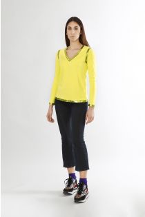 camiseta con escote de pico y manga larga en tejido de punto con cuello laminado