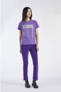 Camiseta con estampado adornada con pedrería, confeccionada en tejido de punto de algodón elástico.
