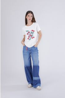 Camiseta de cuello redondo en jersey de algodón elástico suave y cómoda. el estampado multitécnico de cerezas en la parte delantera le da un toque alegre y femenino ideal para looks veraniegos de estilo casual-chic. la modelo mide 175 cm y lleva la talla s. corte: regular.